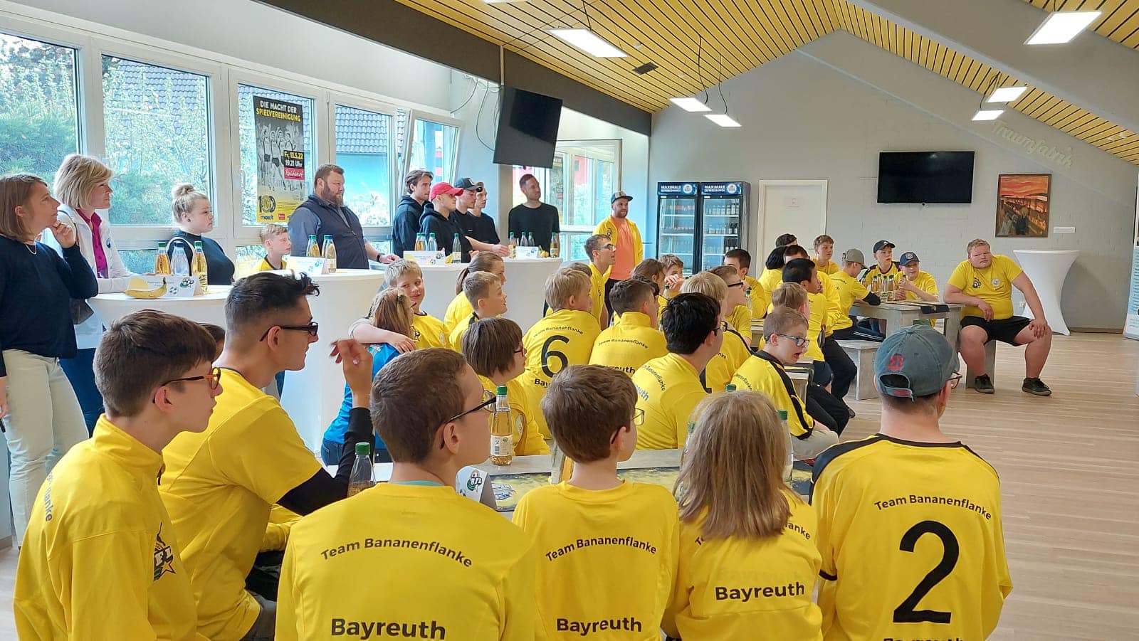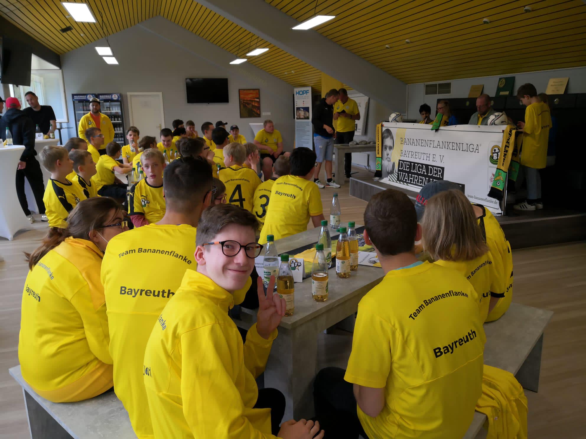 Nach langen Monaten mit Corona und wenigen schönen Momenten durften sich unsere Bananenflanken-Profis heute über ein richtiges Highlight freuen. Alle Spielerinnen und Spieler vom Team Bananenflanke Bayreuth haben heute Ihre Spielerverträge unterschrieben. Zur Unterstützung waren die Jungs: Nicolas Andermatt, Ivan Knezevic, Tim Danhof, Benedikt Kirsch und Marcus Ziereis von der SpVgg Bayreuth mit dabei. Sie waren für die Kids da und haben alle Autogramm und Fotowünsche erfüllt. Für leckere Snacks sorgte die Geseeser Landbäckerei.