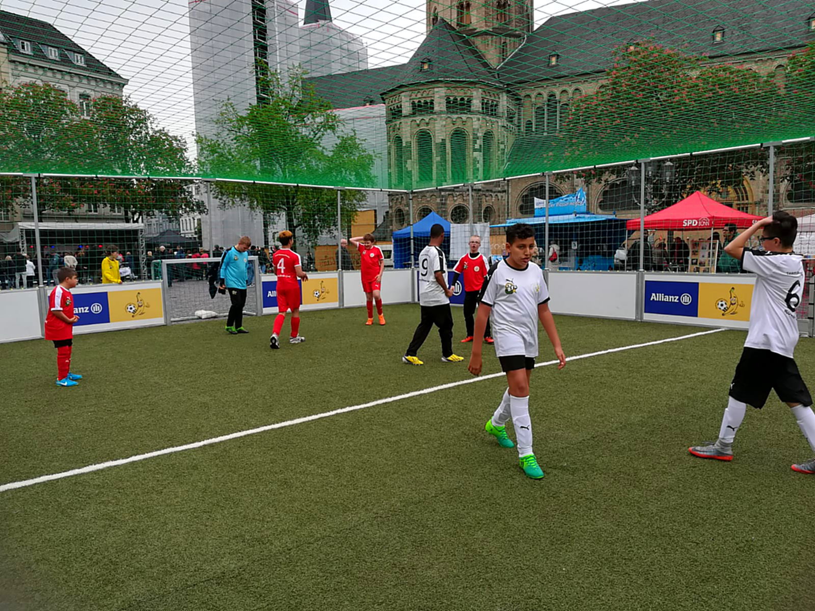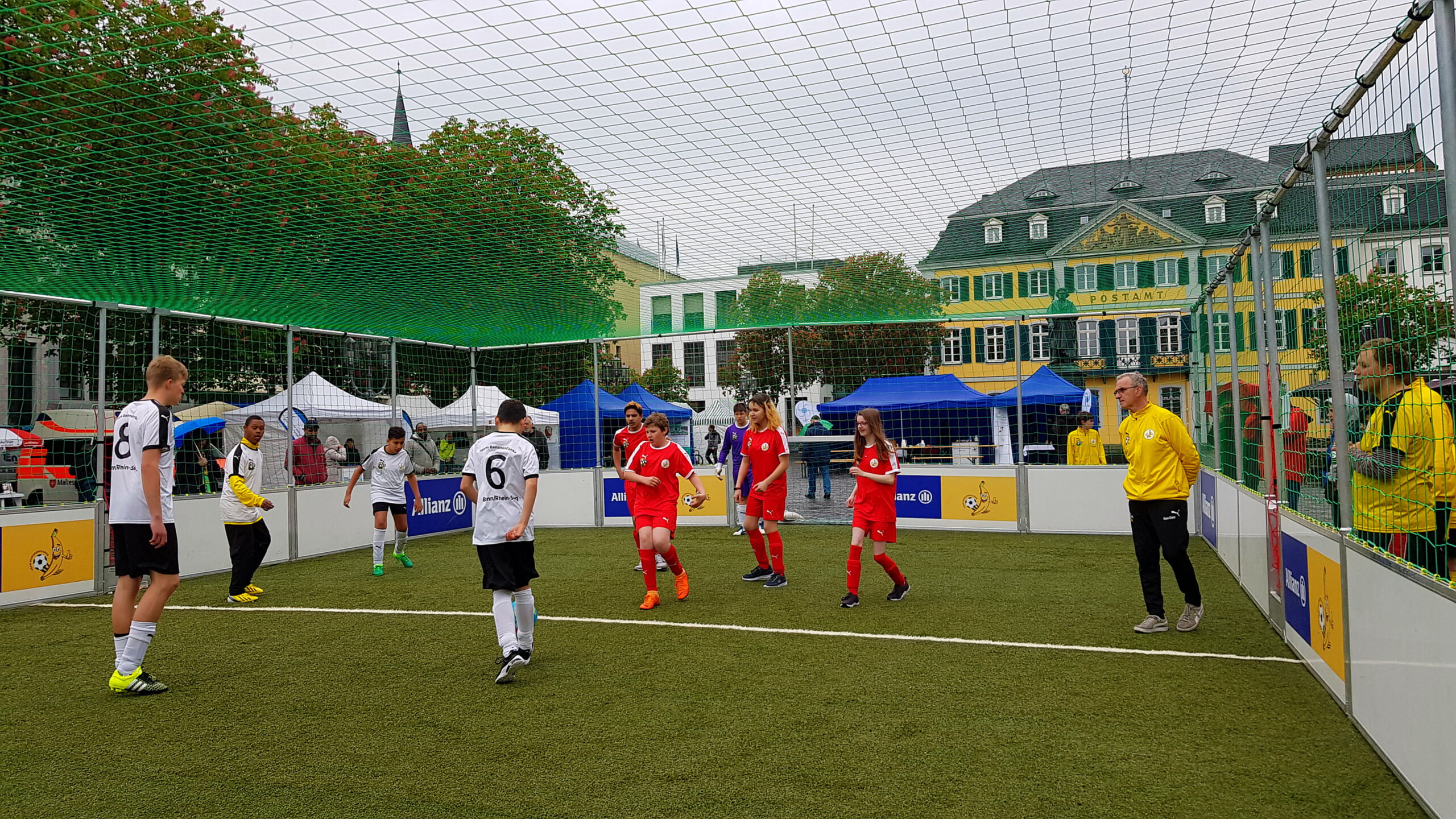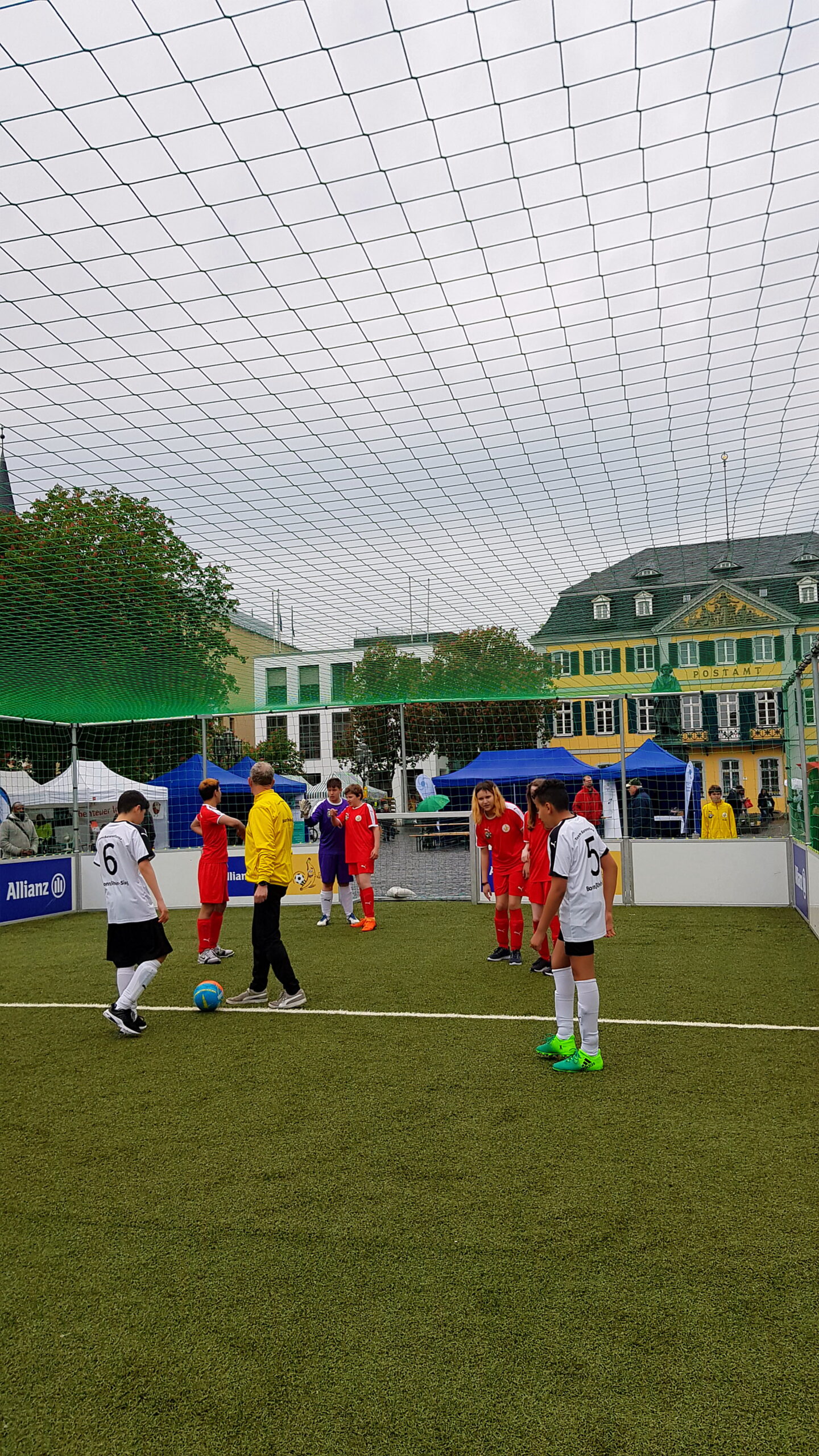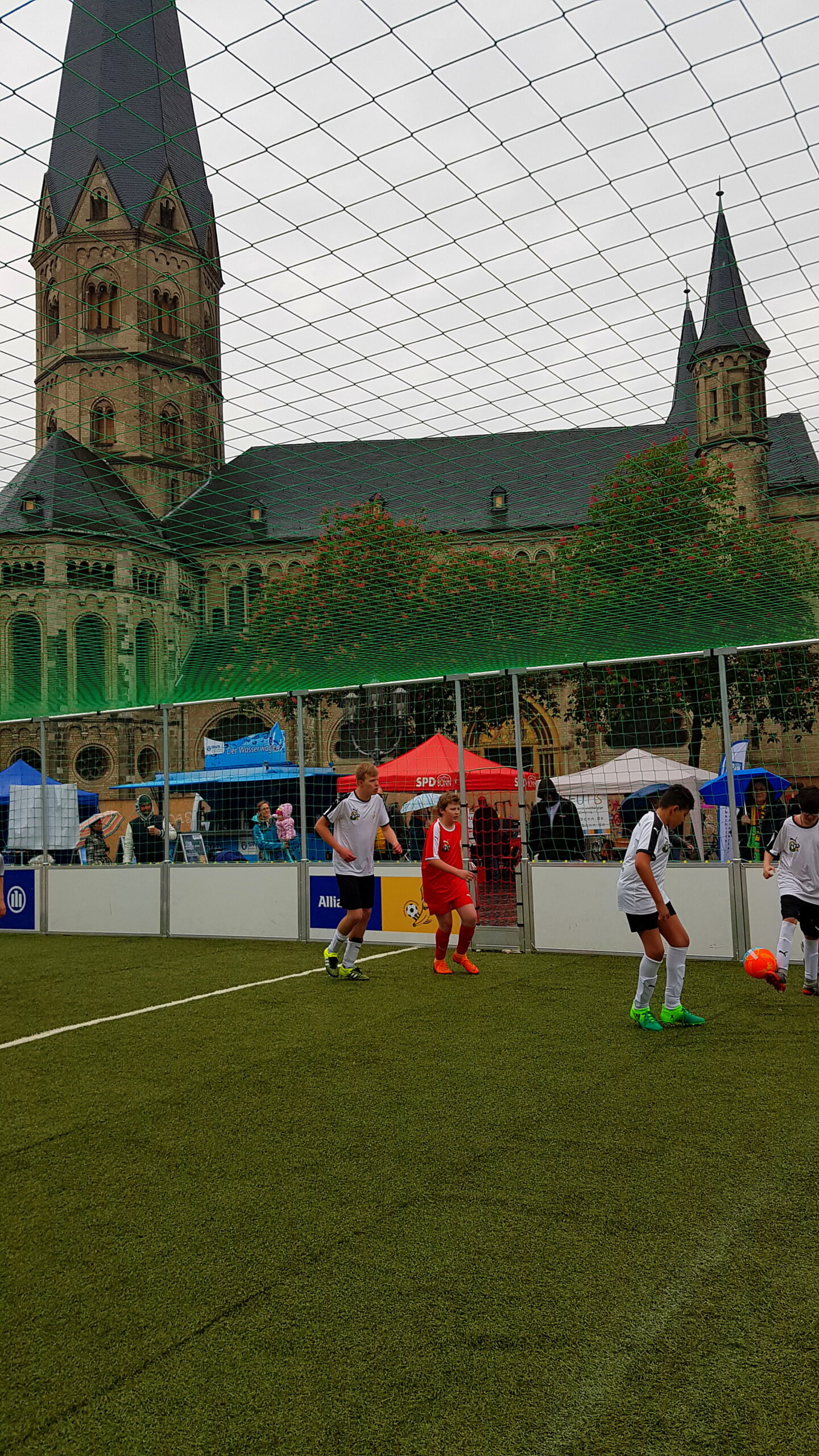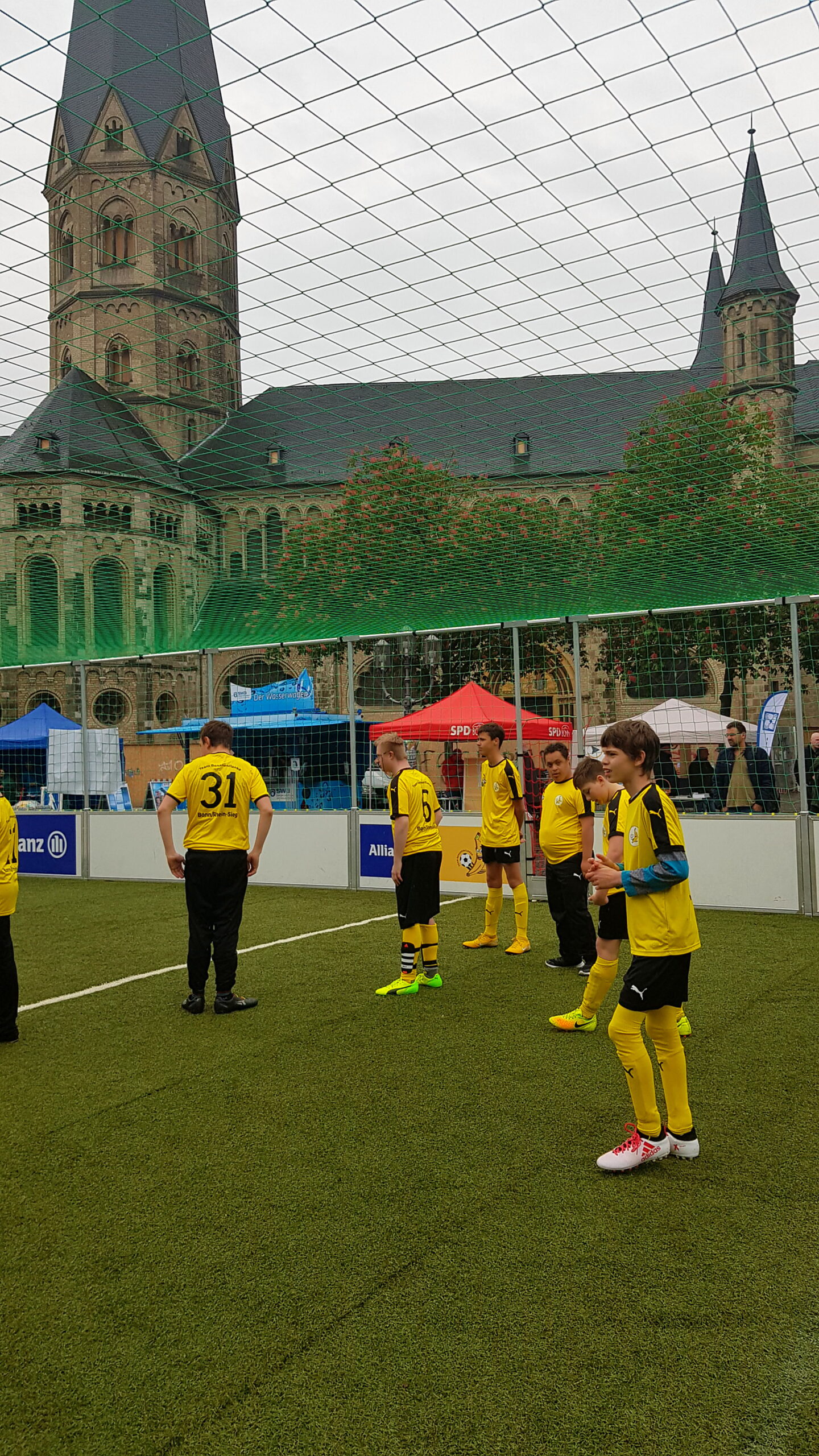 Für die Lehrer der Vorgebirgsschule Frau Wolf und Herr Simon-Pielhau war es keine Frage sie sagten sofort zu die Fußball AG zum Münsterplatz zu begleiten umso schlagkräftigere Mannschaften aufbieten zu können.