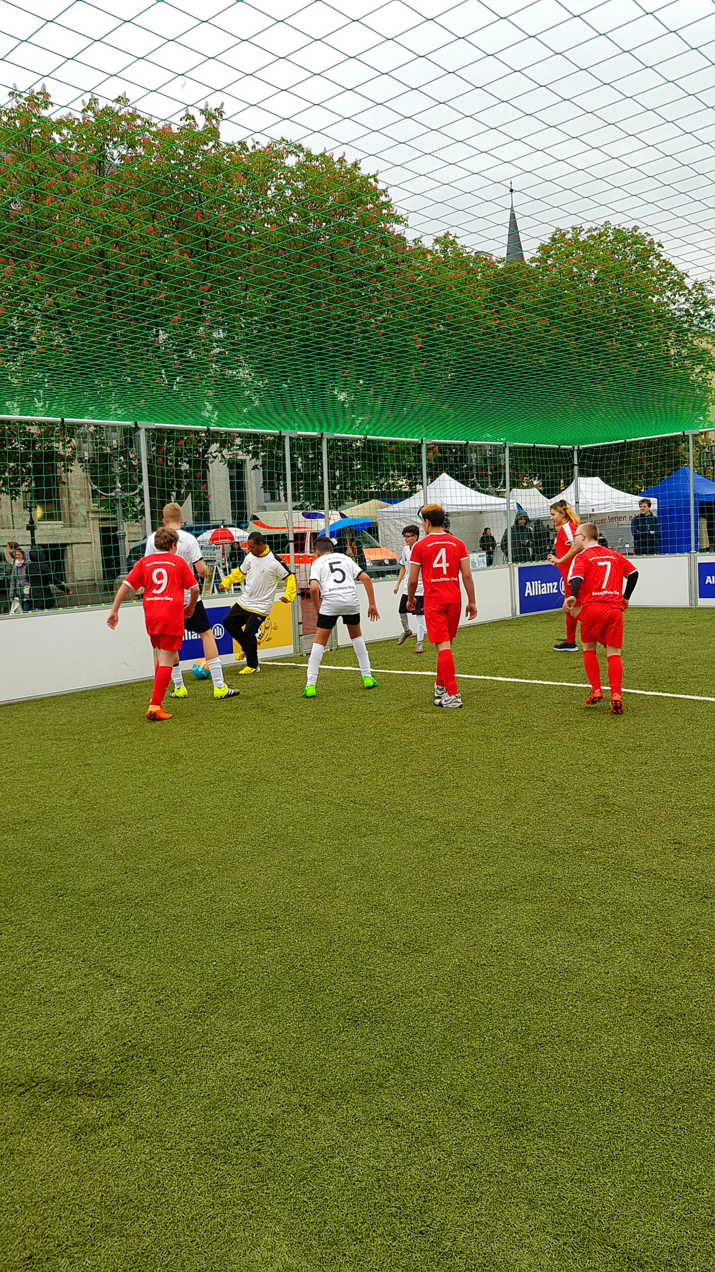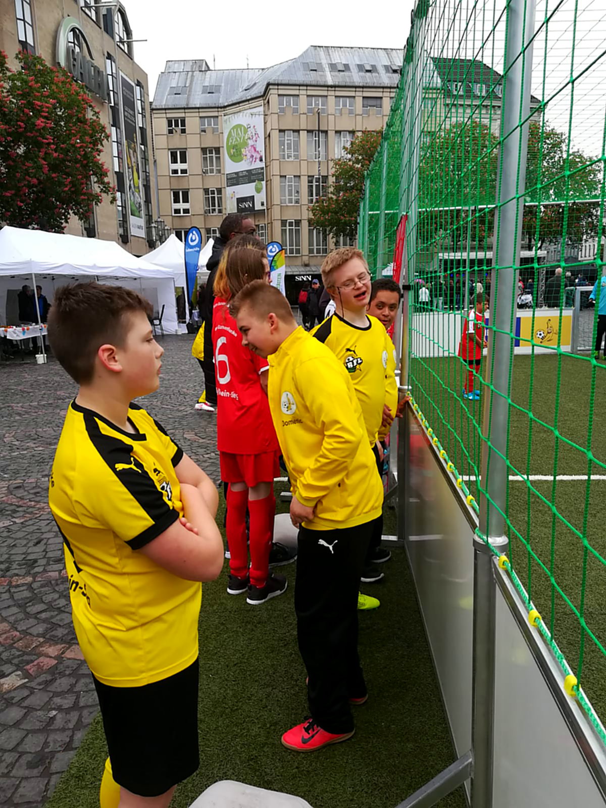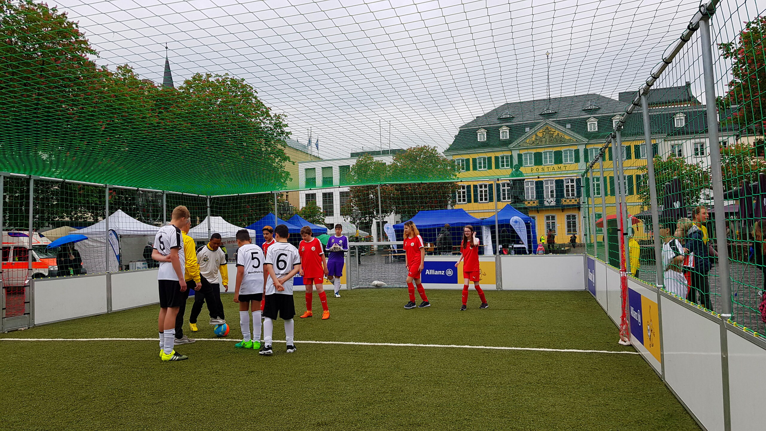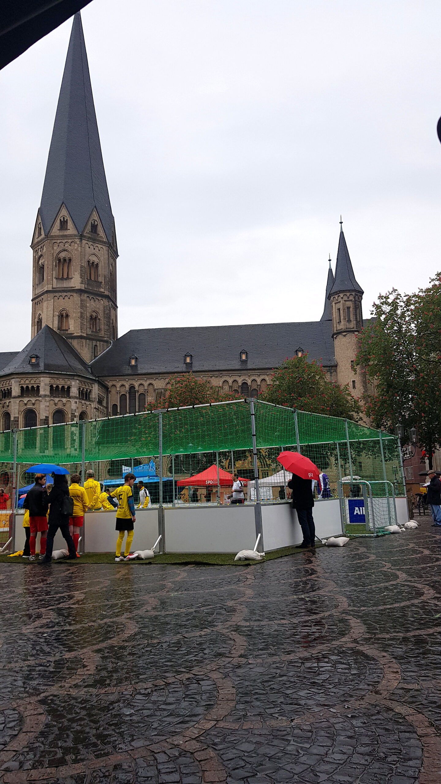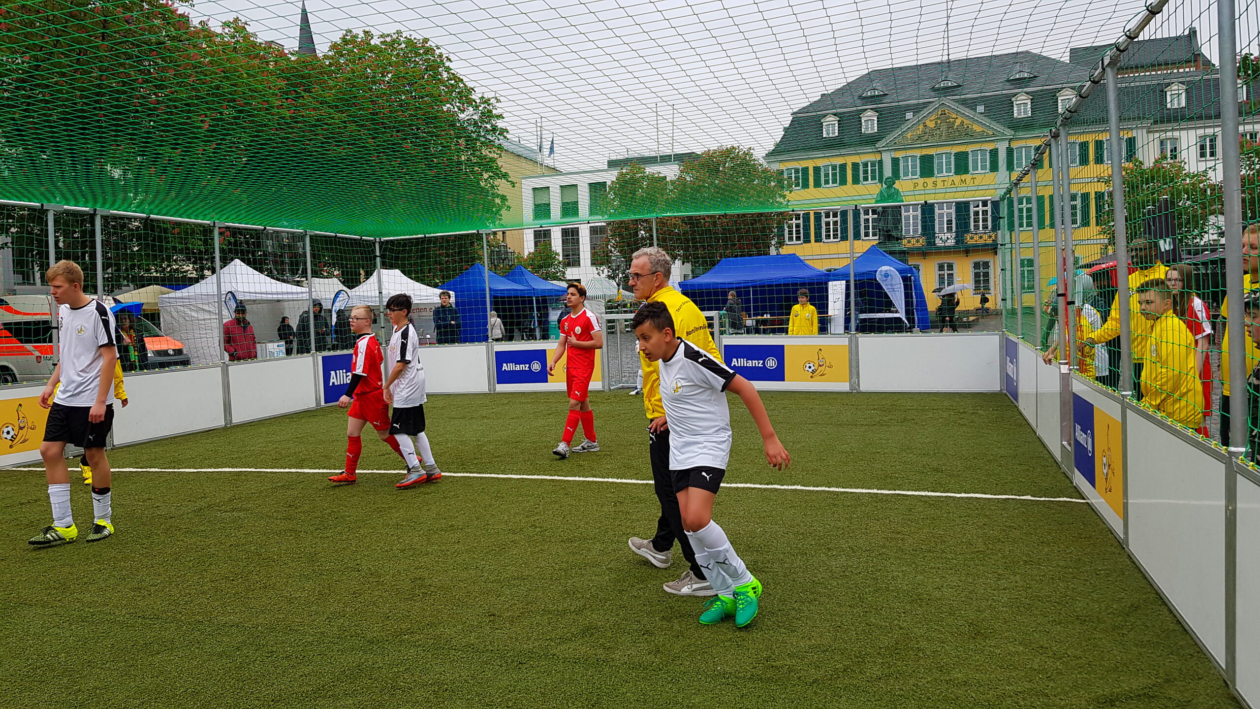 Für die Lehrer der Vorgebirgsschule Frau Wolf und Herr Simon-Pielhau war es keine Frage sie sagten sofort zu die Fußball AG zum Münsterplatz zu begleiten umso schlagkräftigere Mannschaften aufbieten zu können.