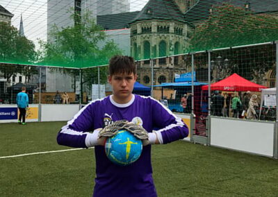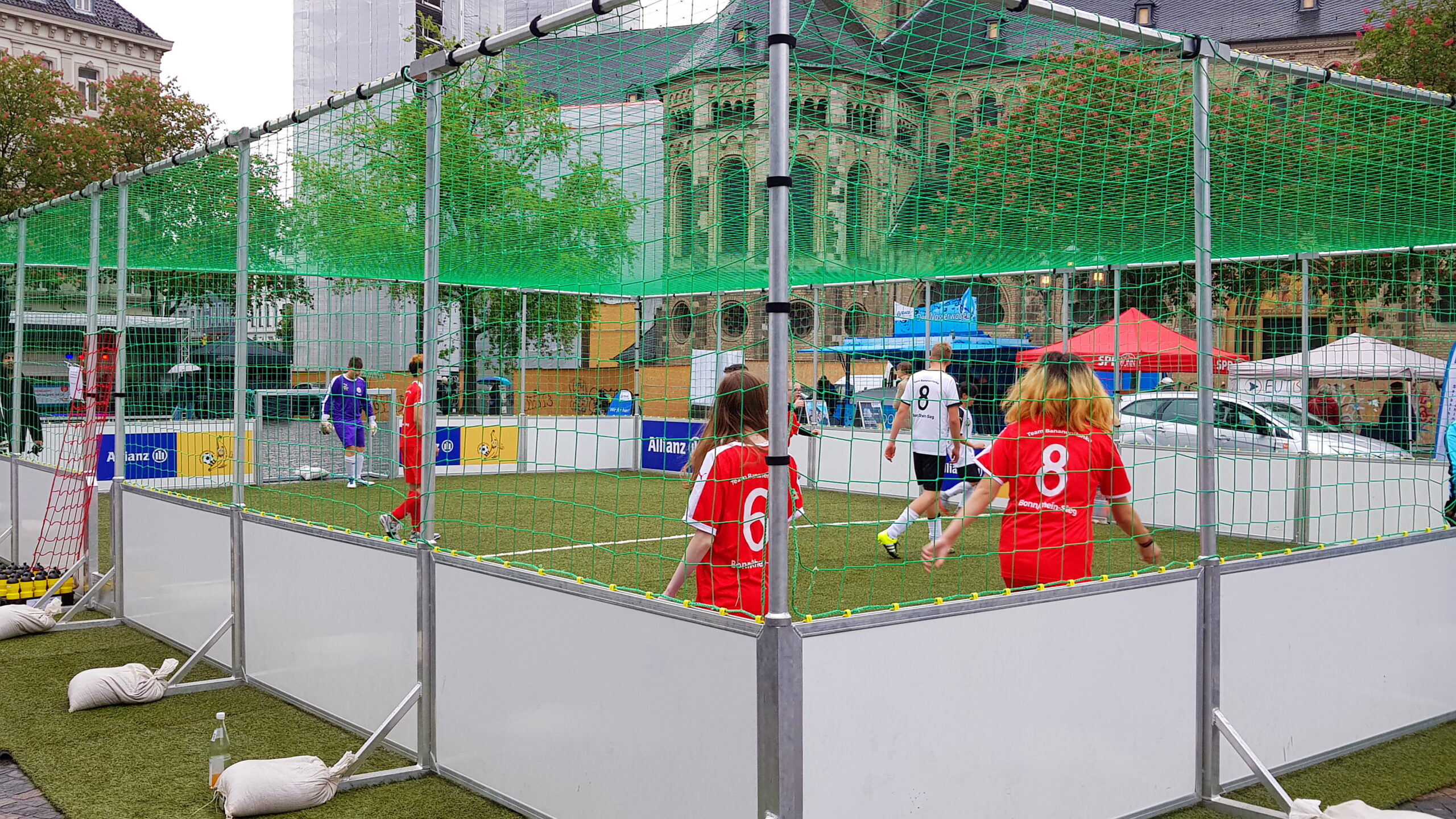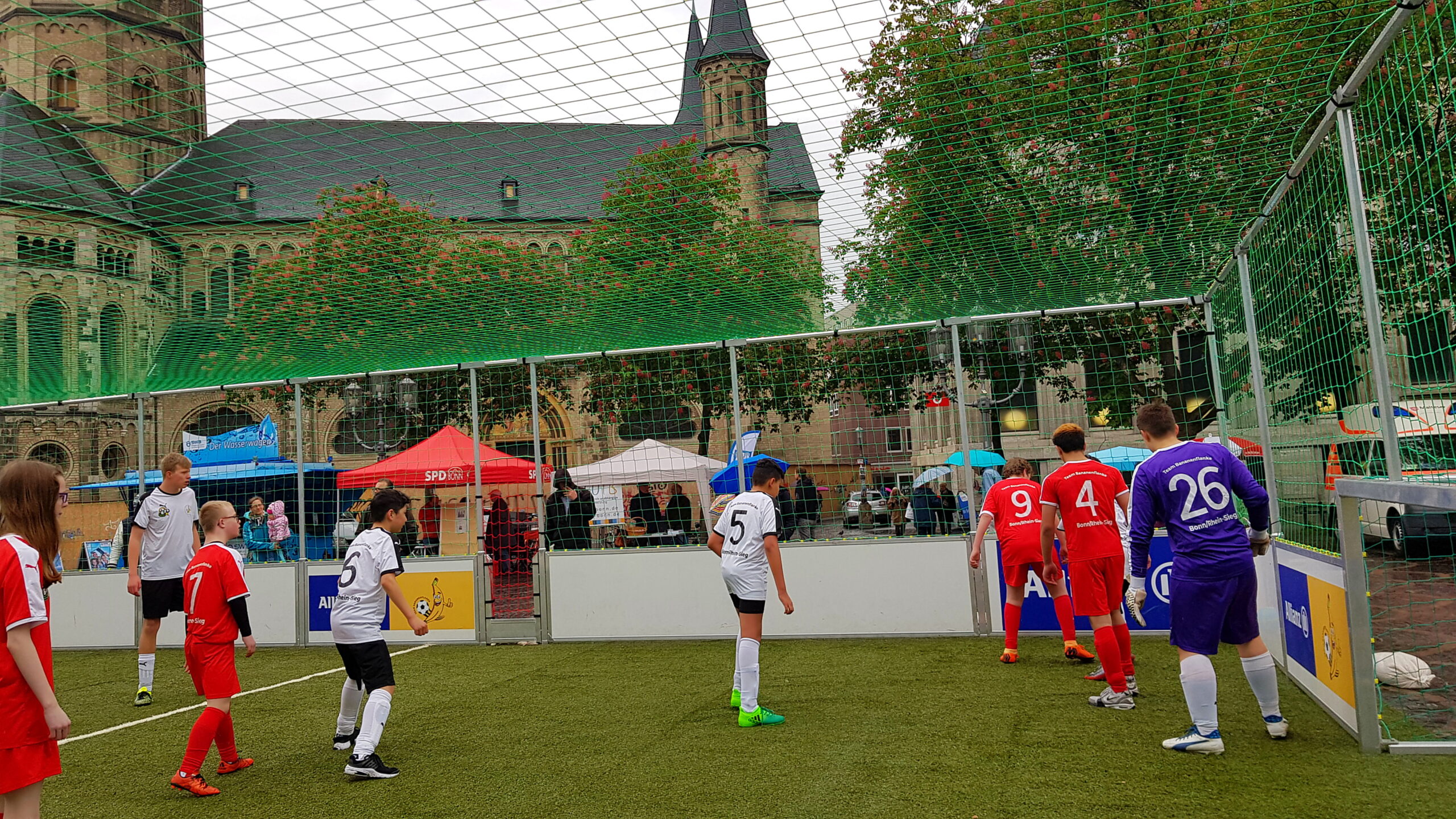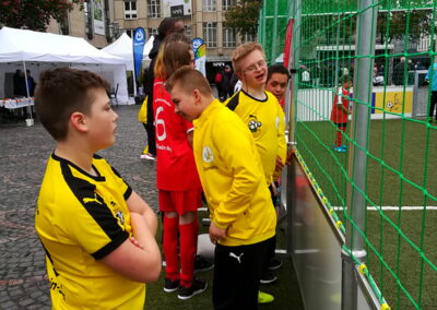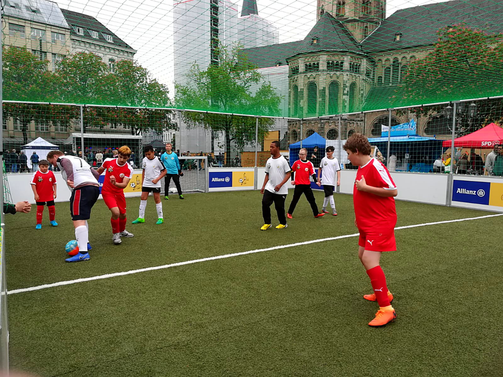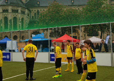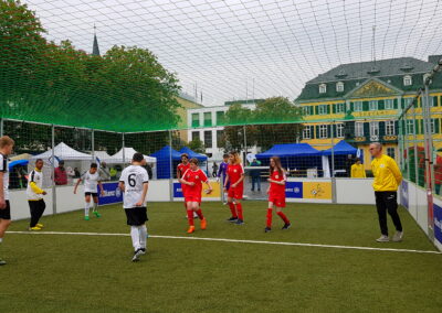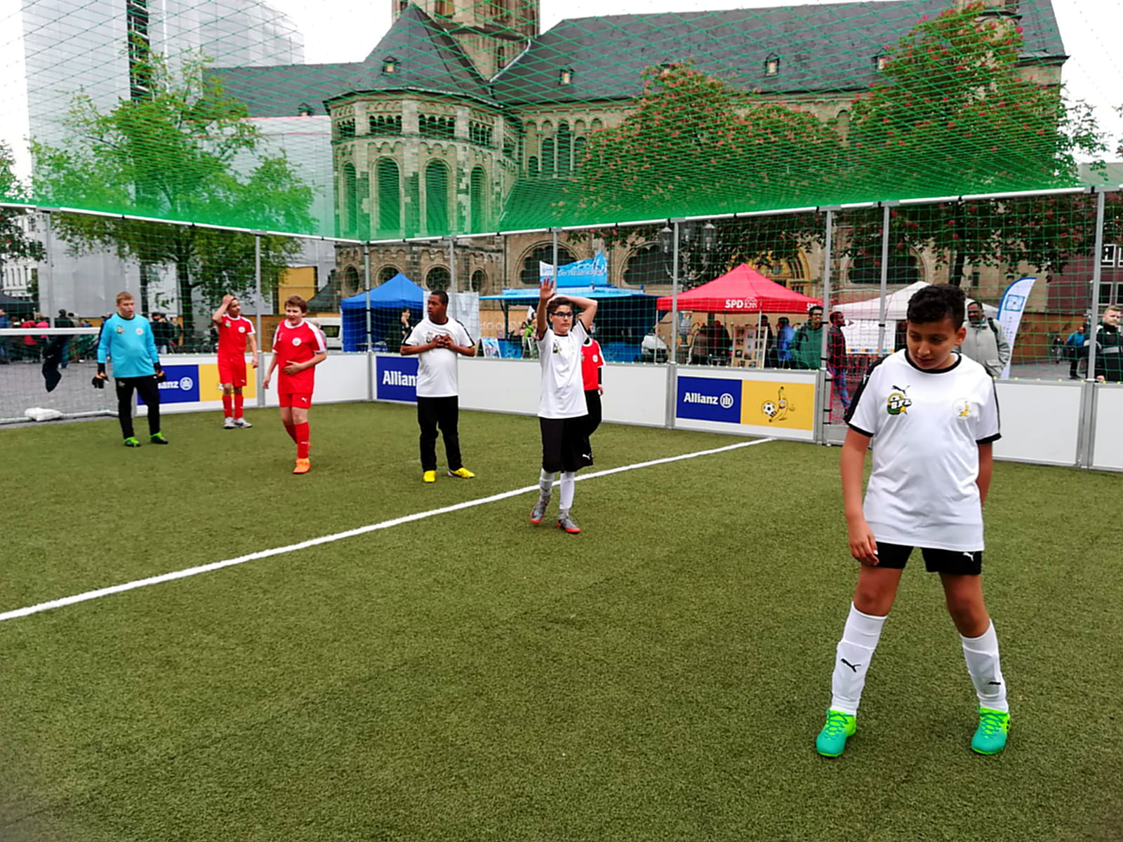 Für die Lehrer der Vorgebirgsschule Frau Wolf und Herr Simon-Pielhau war es keine Frage sie sagten sofort zu die Fußball AG zum Münsterplatz zu begleiten umso schlagkräftigere Mannschaften aufbieten zu können.