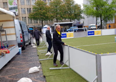 Los ging es gegen 07.00 Uhr mit dem Aufbau des Soccercourt und der Pavillons.
