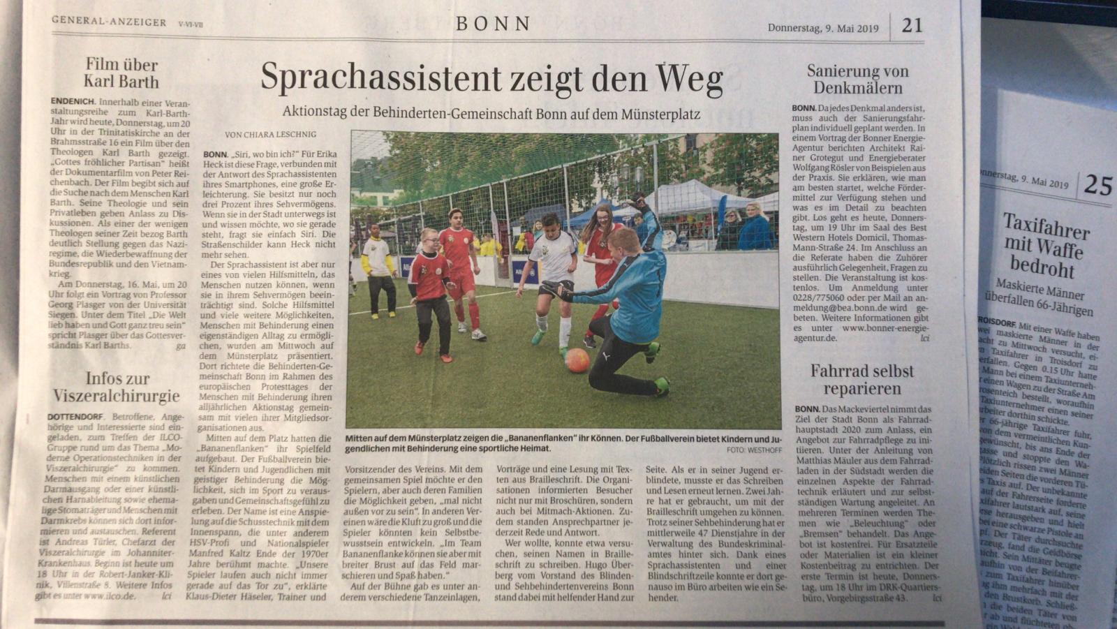 Zum dritten Mal war die Bananenflanke Bonn/Rhein-Sieg am Mittwoch 07.05.19 auf dem Bonner Münsterplatz beim Tag der Gleichstellung von Behinderten.