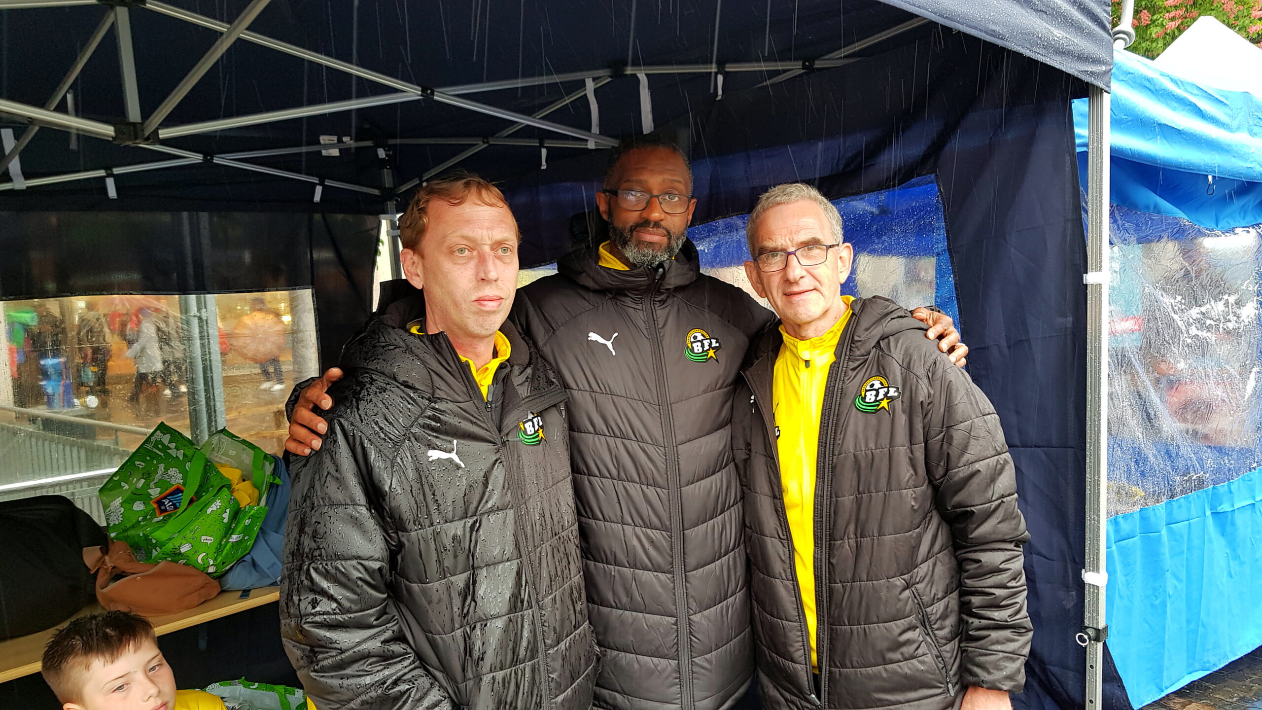 Nein Petrus tat uns keinen Gefallen es regnete weiter in Kübeln. Zu den Obengenannten, beim Aufbau gesellten sich noch Catherine, Gerald und Michael beim Abbau dazu. Der Rollrasen hat so viel Regenwasser aufgesaugt das es vieler Hände bedarf diesen auf den Hänger zu bringen. Mit geeinten Kräften und durchnässt konnten wir das Equipment verstauen.