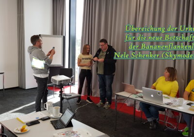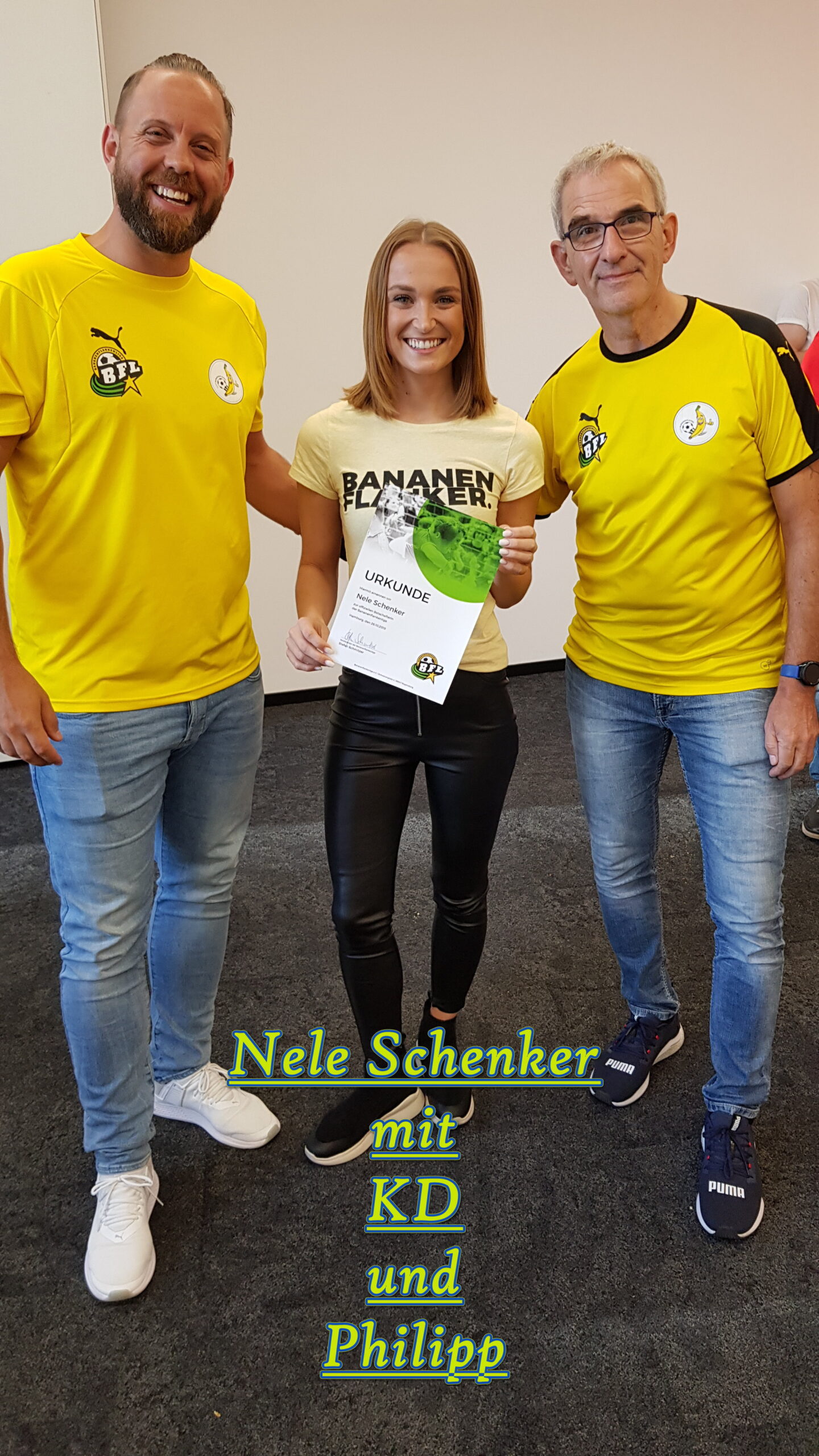 Voller Stolz und Freude konnte der Verband eine weitere Botschafterin der Bananenflankenliga bekannt geben. Neben Tobias Schweinsteiger, wird sich Nele Schenker für die Bananenflankenliga als Botschafterin engagieren. Nele, bekannt als Sportmoderatorin bei Sky, wurde von der Bananenflanke Bonn/Rhein-Sieg ins Herz geschlossen. Nele Schenker durfte Bonn/Rhein-Sieg bei der Einladung vom Bundespräsidenten 2017 in Berlin schon kennen lernen. Schon damals hat sie uns imponiert, mit welchem Engagement sie bei der Sache war. Vielen Dank liebe Nele das du für die wahren Helden dein Herz geöffnet hast.