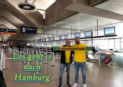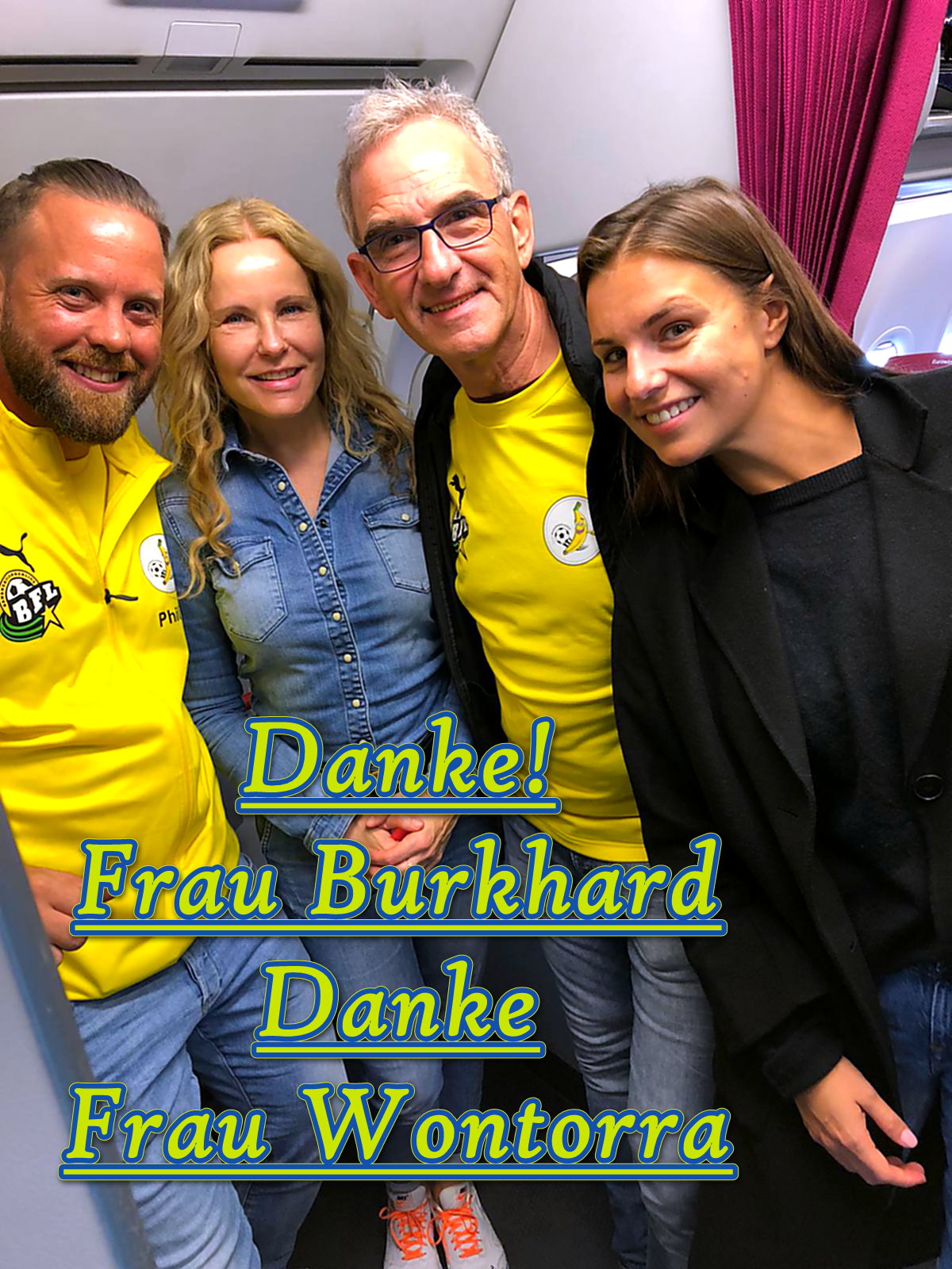 Auf dem Hinflug nach Hamburg durften die beiden im Flieger Frau Burkhard ( RTL ) und Frau Laura Wontorra ( Sportmoderatorin ) kennen lernen und ihnen etwas von unserem Projekt Bananenflanke erzählen. So das unsere Sache noch bekannter wird. Vielen Dank an Frau Burkhardt und Frau Wontorra für ihre Zeit und Interesse.