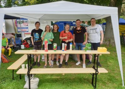 Das Wetter spielte auch größtenteils mit, ein kleiner Schauer am Nachmittag bot eher eine willkommene Abkühlung, als dass er uns störte. Der Soccercourt war gut besucht und unsere Gäste wurden bestens versorgt. Es gab Getränke, Obst, Kaffee & Kuchen, Bratwürste und Pommes.