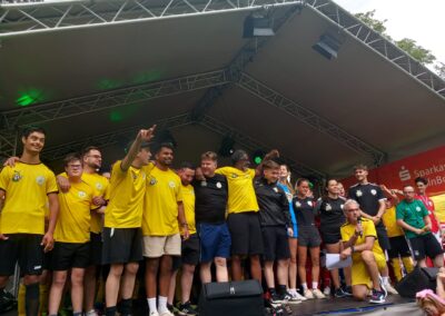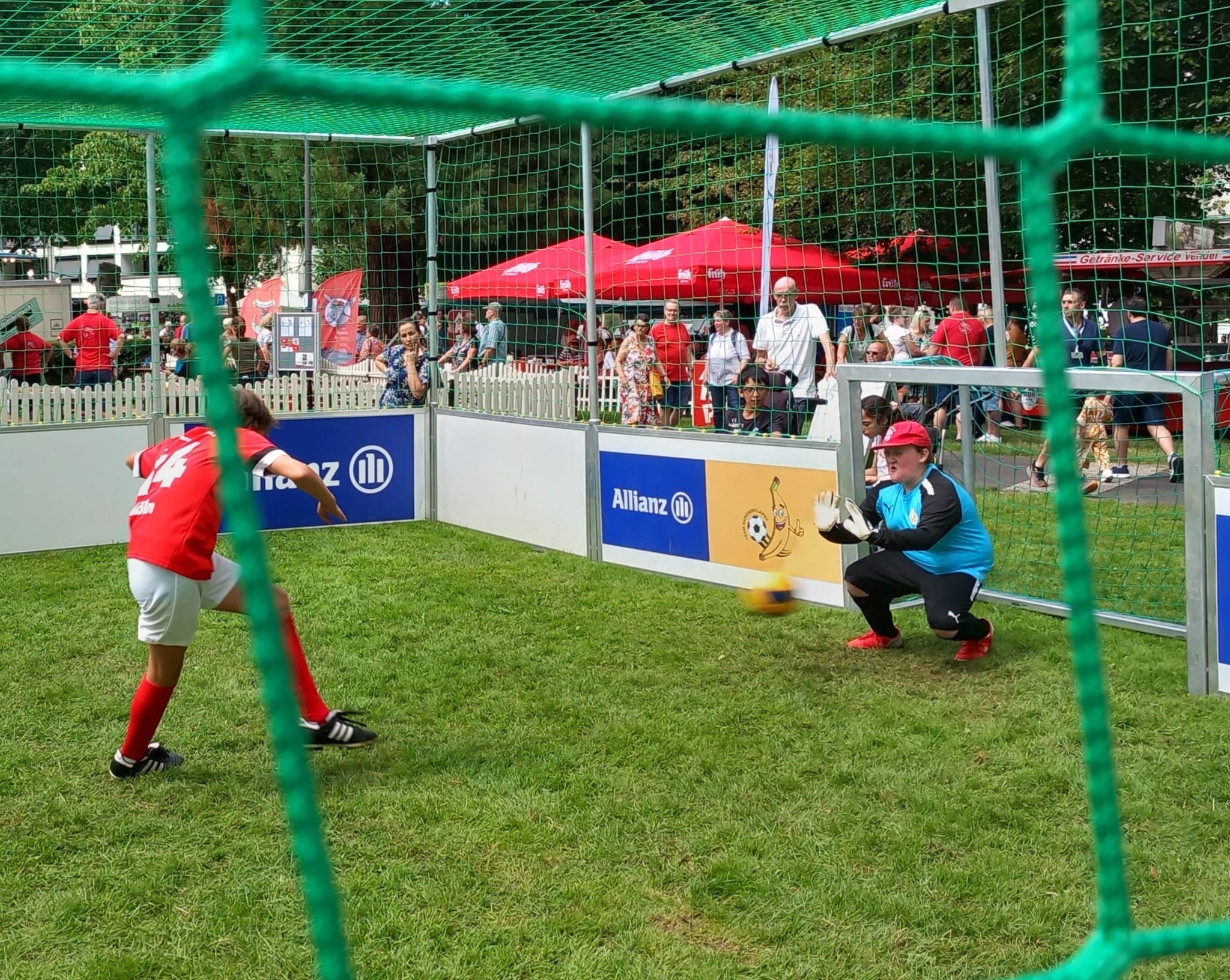 Daher trägt in der Regel jedes Team eintägige Turniere aus und lädt andere Teams der Bananenflankenliga dazu ein. Dank der mobilen Soccercourts können und sollen diese Turniere dort ausgetragen werden, wo was los ist. Und wir in Bonn haben das Sommerfest Bad Godesberg für uns entdeckt. Es bietet den idealen Rahmen: Organisiert von der Stadt Bonn bekommen hier jedes Jahr die lokalen Vereine die Gelegenheit, sich zu präsentieren. Über 65 Vereine waren dieses Jahr dabei, vom Briefmarkensammeln über Karneval bis hin zu Rugby und Rudern. Die Vielfalt ist enorm und so auch das Interesse der Bevölkerung.
