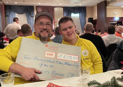 In diesem Jahr wurden wir auserwählt und durften uns über die sagenhafte Summe von 1.600,-€ freuen! Die Freude konnten wir dann beim letzten Training des Jahres am 15.12.2023 mit den Teamkameraden teilen, es wurde ausgiebig gejubelt.