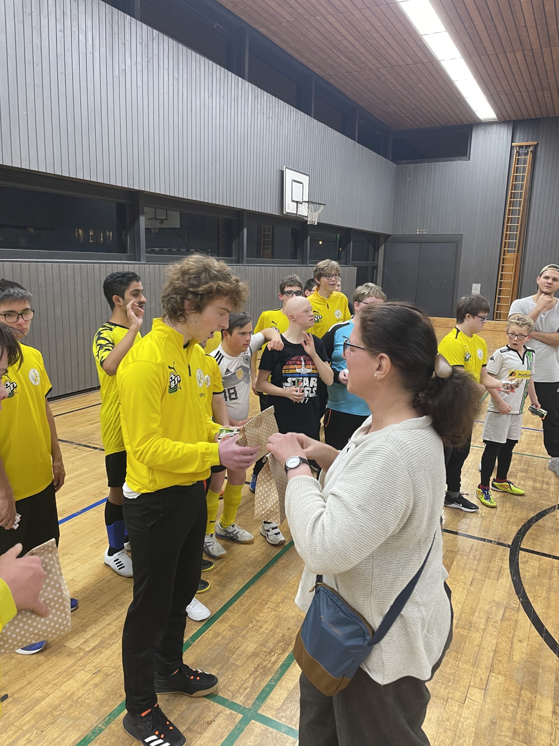 Am 08.12.2023 waren Domi, sein Bruder Yannik und Schatzmeister Tobi zu Gast auf der Weihnachtsfeier der Schiedsrichter des Fußballkreises Bonn. Die Schiedsrichter waren dem Aufruf des Kreises gefolgt und spendeten freiwillig (einen Teil) ihrer Aufwandsentschädigung – eine schöne Tradition des Kreises in der Vorweihnachtszeit.