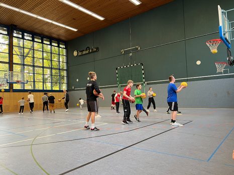 Basketball kann man zwar draußen und drinnen spielen. Unsere Trainer haben sich jedoch für die Halle entschieden, um auf alle Übungen gut vorbereitet zu sein.