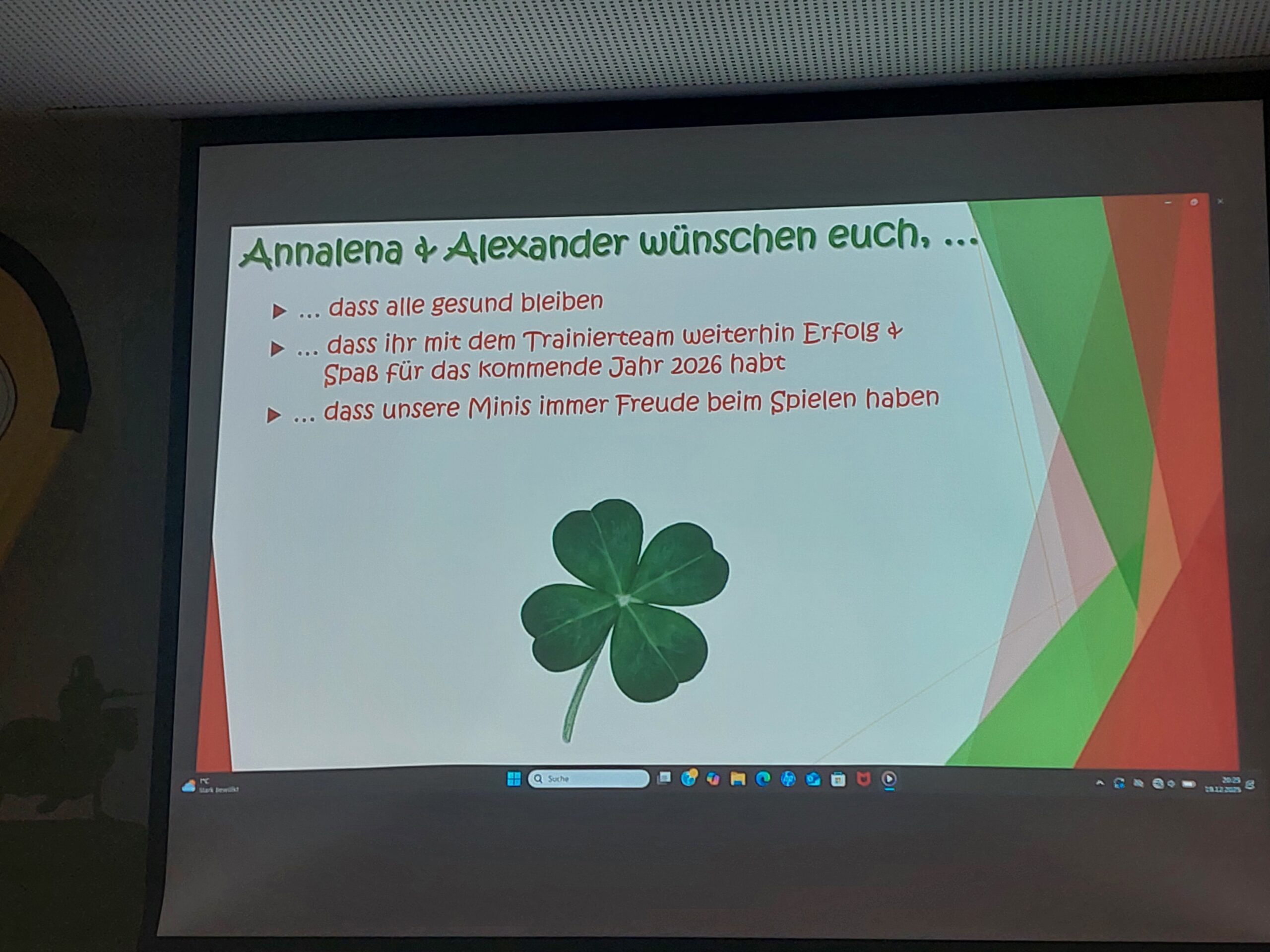Den Auftakt bildete ein von Tobias Brandl liebevoll gestaltetes Weihnachtsvideo. Mit Humor, Herz und vielen Erinnerungen zeigte es die schönsten Momente des vergangenen Jahres – von Turnieren über Trainings bis hin zu besonderen Begegnungen. Der Saal lachte, staunte und applaudierte immer wieder.