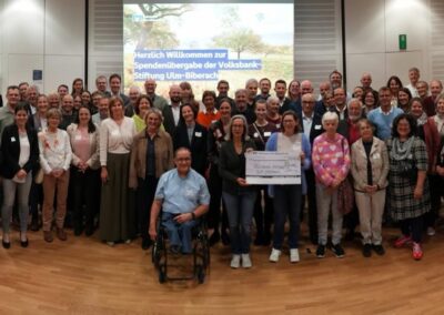 Vor kurzem durfte sich das Team Bananenflanke Ulm über eine großzügige Unterstützung der Volksbank Ulm-Biberach freuen. Schon während eines Trainingsbesuchte uns ein Vertreter der Bank, schaute unseren Spieler:innen beim Kicken zu und nahm sich Zeit für ein gemeinsames Gruppenfoto. Die offizielle Scheckübergabe fand dann einige Tage später im Rahmen einer Veranstaltung mit mehreren Übergaben statt. Auch dort entstand ein schönes Gruppenfoto, das diesen besonderen Moment festhielt. Wir bedanken uns ganz herzlich bei der Volksbank für die Spende und die damit verbundene Wertschätzung unserer Arbeit. Dank solcher Unterstützung können wir unseren Spieler:innen weiterhin viele unvergessliche Fußballerlebnisse ermöglichen.